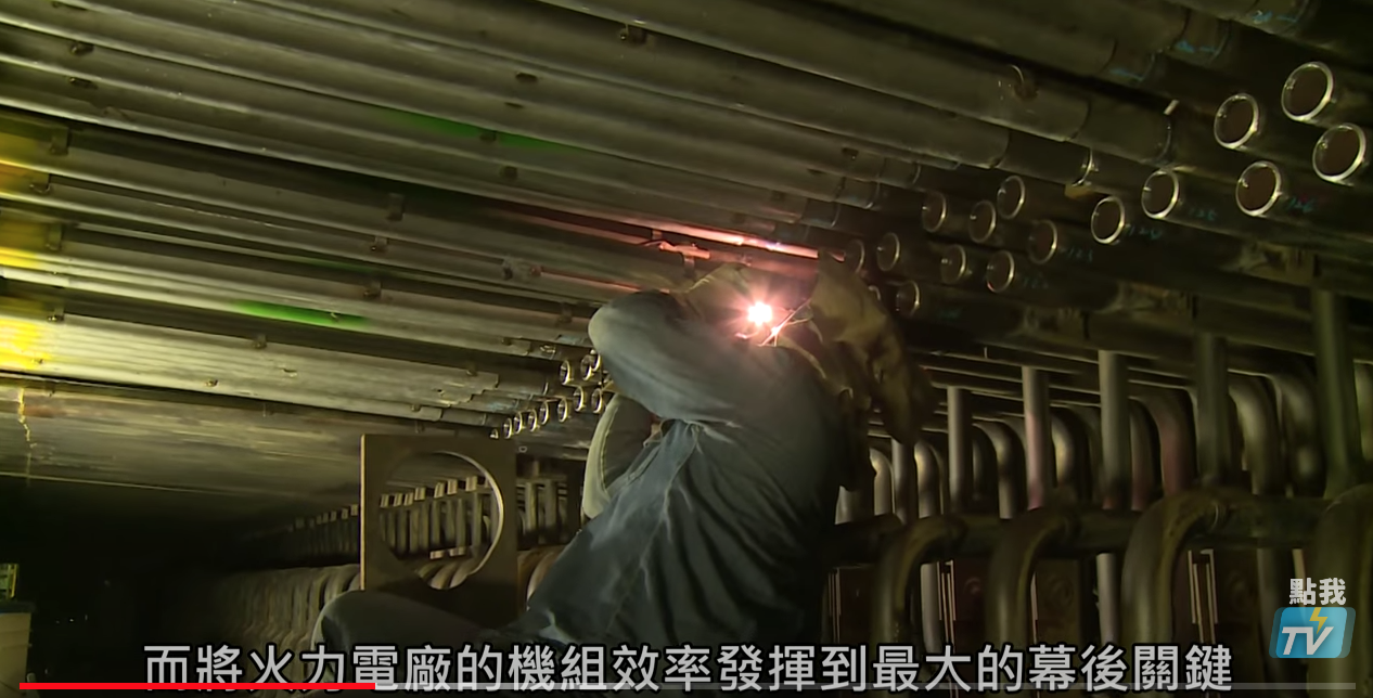 以台中發電廠鍋爐來說,爐高60多公尺(相當於一般建築18層樓)、長20公尺、寬18公尺,裡面遍佈長達400~500公里、像高牆般的爐管,是個「黑暗」且「高溫」的空間,待半小時就會全身溼透…一天經常要換4~5套衣服🤒。同仁用手觸摸爐管檢查時,也可能會被未完全冷卻的爐管燙傷,或被破口割傷;裡面的粉塵和硫酸結露也可能傷害呼吸器官,必須戴上防酸口罩😷。有時為了找破口,同仁必須搭乘吊籠,在高空中上下左右用手觸摸爐管,過程搖搖晃晃…。說到這,小編深深覺得要當一名鍋爐維修技術人員真的不簡單!不僅需要專業、經驗,更要有膽識、不怕辛苦,供電緊澀突遇破管,更要克服壓力趕工搶修…。感謝你們的付出,總是堅守使命,為我們來電⚡。