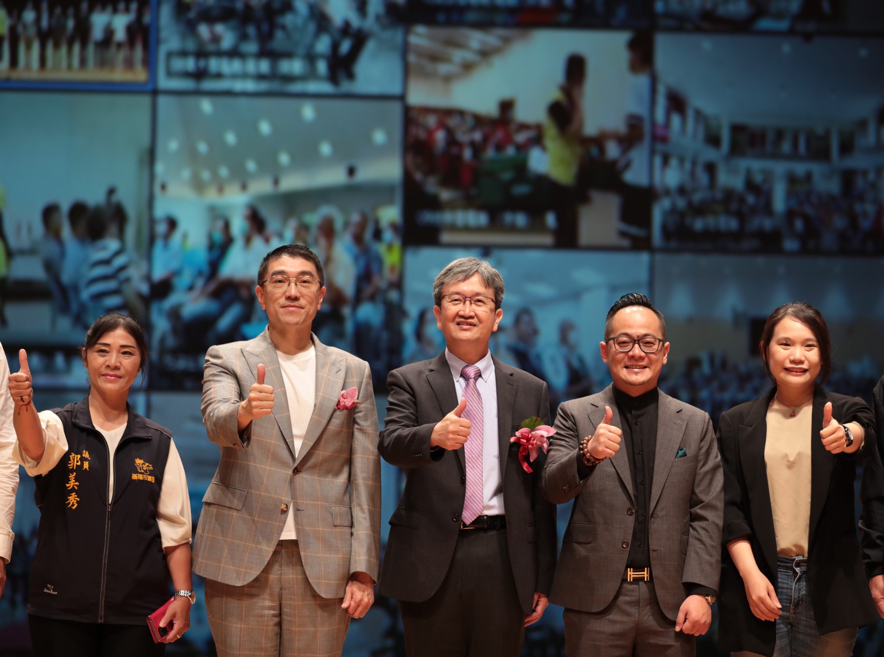 - 台電今日聯手全國從北到南、從本島到離島共20座水力、火力及核能電廠,舉辦「夢想併聯 2023台電獎助學金頒獎典禮」,其中以協和電廠擔任主場,聯合核二廠及林口電廠共同於基隆表演藝術中心頒發。(左起為基隆市議員郭美秀、基隆市長謝國樑、台電總經理王耀庭、基隆市議會議長童子瑋、基隆市議員吳驊珈)
