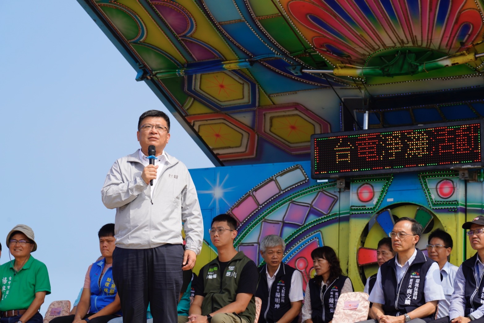 - 台電今日舉行2023年台電聯合淨灘活動,由代理董事長曾文生(前排右)帶領同仁投入淨灘。台電指出,今年活動主場選在被譽為「一生必遊之地」、世界七大天空之鏡的台中高美濕地海角明珠,旁邊是設有16支台電風機的「風車大道」網美拍照熱點。