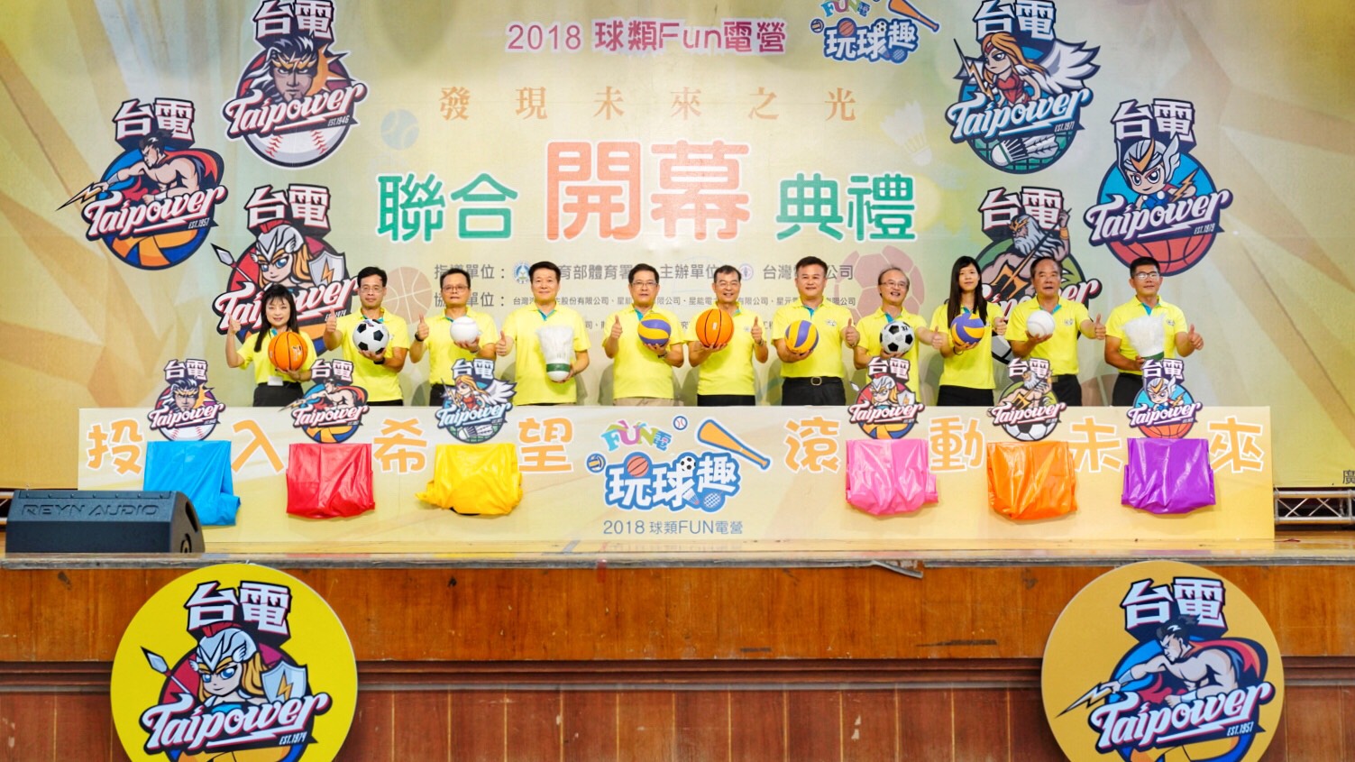 台電2018球類FUN電營今(3)日上午在臺北市五常國小體育館熱鬧開幕,今年主題是「發現未來之光」,希望透過營隊傳承專業球技與希望,培育國家體育幼苗。今日典禮由台電董事長楊偉甫主持,中華民國排球協會秘書長鄭松益、中華民國羽球協會理事長張國祚等應邀出席,再加上小學員與家長齊聚現場達500人,由五常國小啦啦隊活力開場,台電FUN電營吉祥物「電力虎寶」也現身帶動歡樂氣氛,啟動儀式由貴賓投入營隊5大球種到「希望搖籃」儀式台,並從學員席兩側拋出大球,讓台下小朋友接力滾動,象徵滾動希望與未來。
