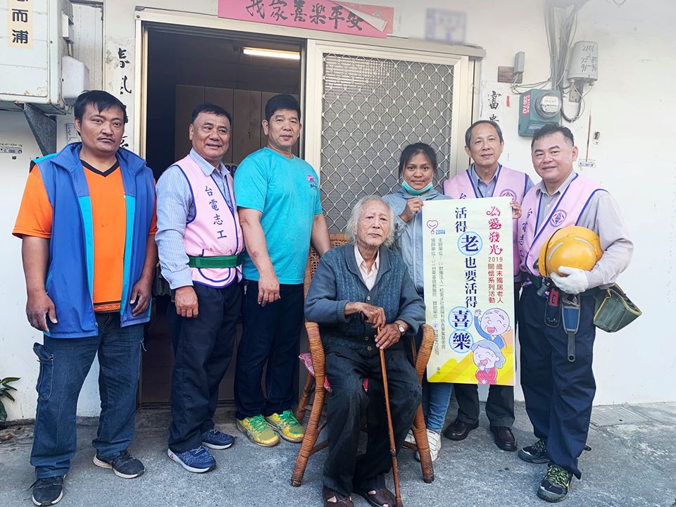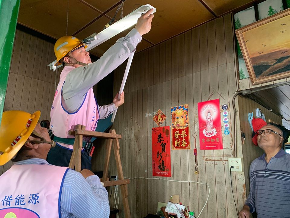 - 台電自2005年起深耕花東地區,舉辦為愛發光關懷活動,還推出屋內線路檢測服務,圖為長輩致謝台電台東區處外線技術員