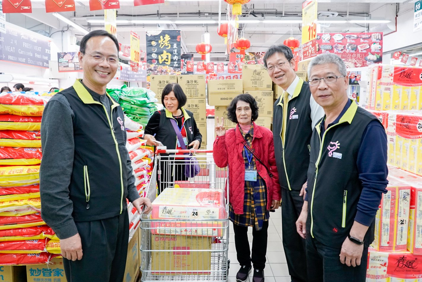 台電在圍爐之後,也致贈每位長輩1200元禮券,陪伴他們到附近賣場採購年貨。同時對行動不便無法親自採買的長輩,也宅配洗髮乳、毛巾、麥片等生活物資到家中。今年第一次參加圍爐的90歲陳奶奶是圍爐現場最高齡的長輩,她開心的表示,要到賣場看看再決定要買什麼。