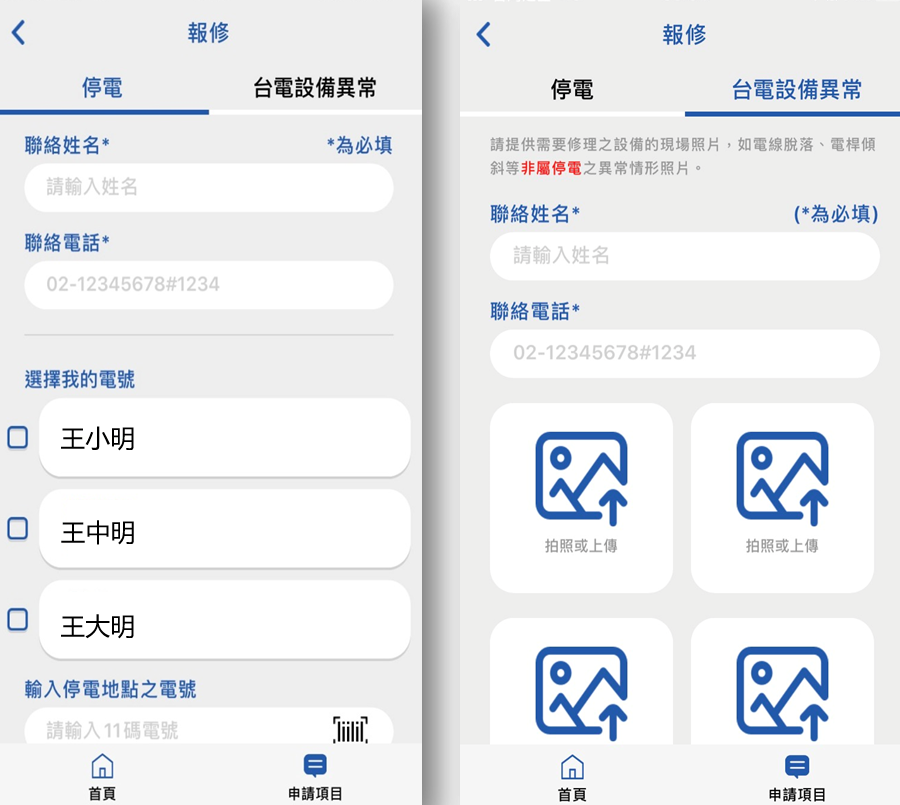 圖說供參:「台灣電力APP」推出停電報修功能,民眾可透過掃描電費帳單上QR Code或自行輸入電號,通報台電搶修,或是發現電線脫落、電桿傾斜等情況,也可上傳現場照片,通知台電儘速搶修。