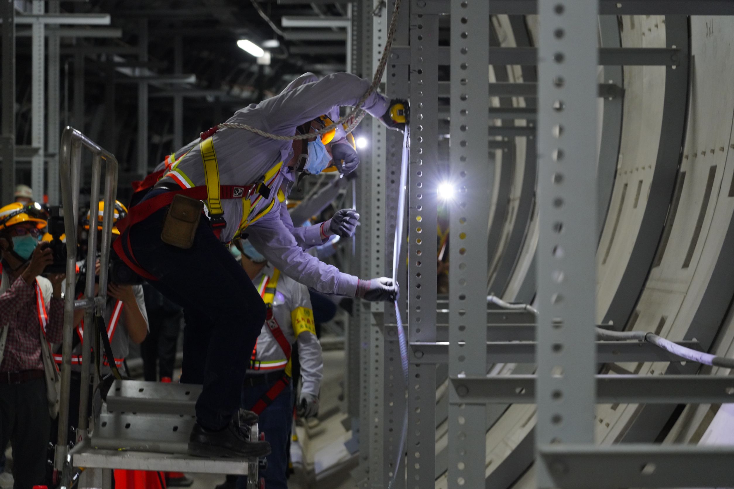 - 地下洞道工程施工環境也是一大考驗,光是「鑽地」爬階梯到50米深的洞道就相當考驗體力,加上空間侷限、空氣品質較差,每推進一公尺都充滿挑戰。台電同仁經常感歎「電力施工難,米米皆辛苦」。