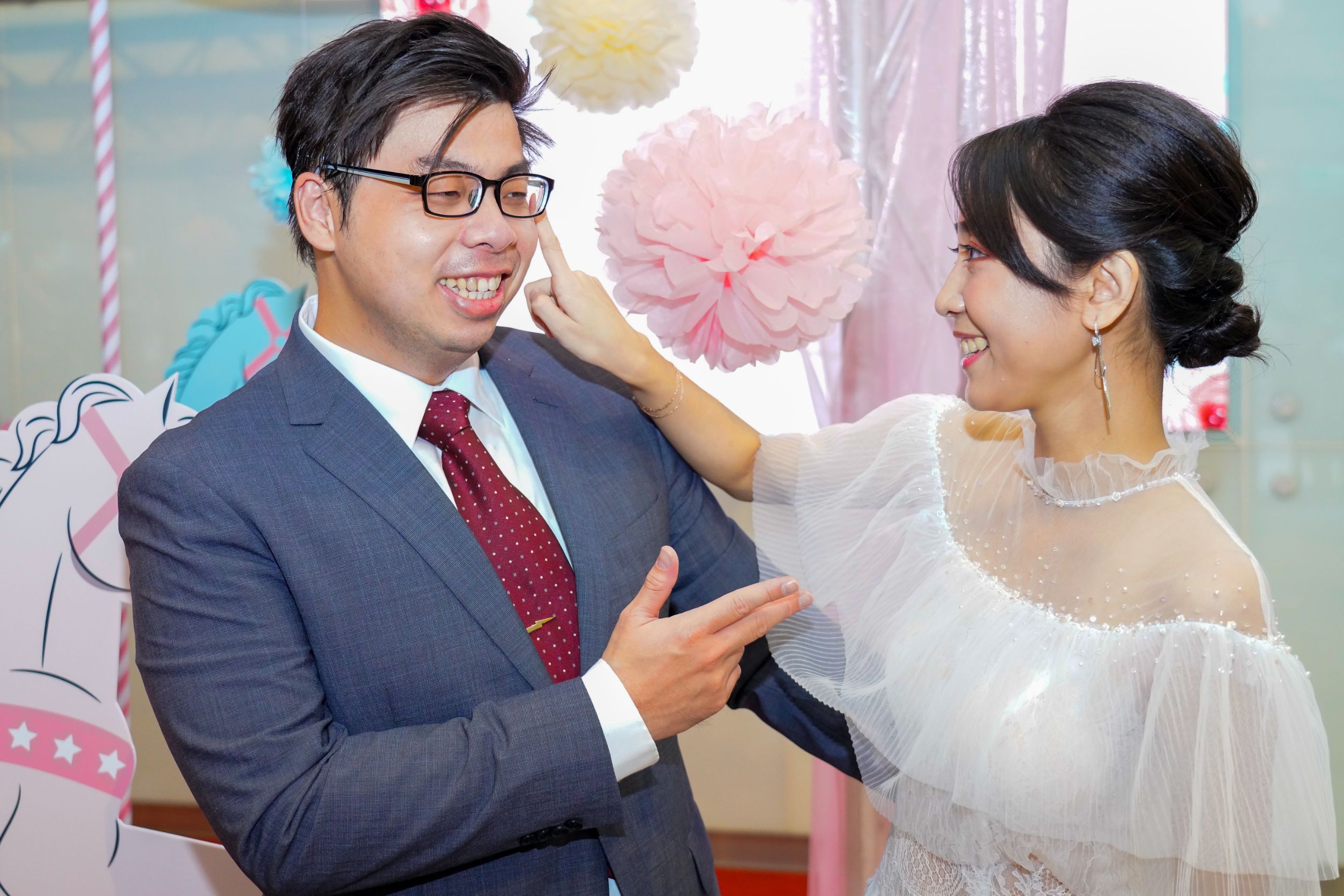 - 來自配電處的張家榮和台北市區營業處的蔡亞璇因共同朋友牽起緣分,克服飲食習慣迥異的挑戰,今日步入禮堂。