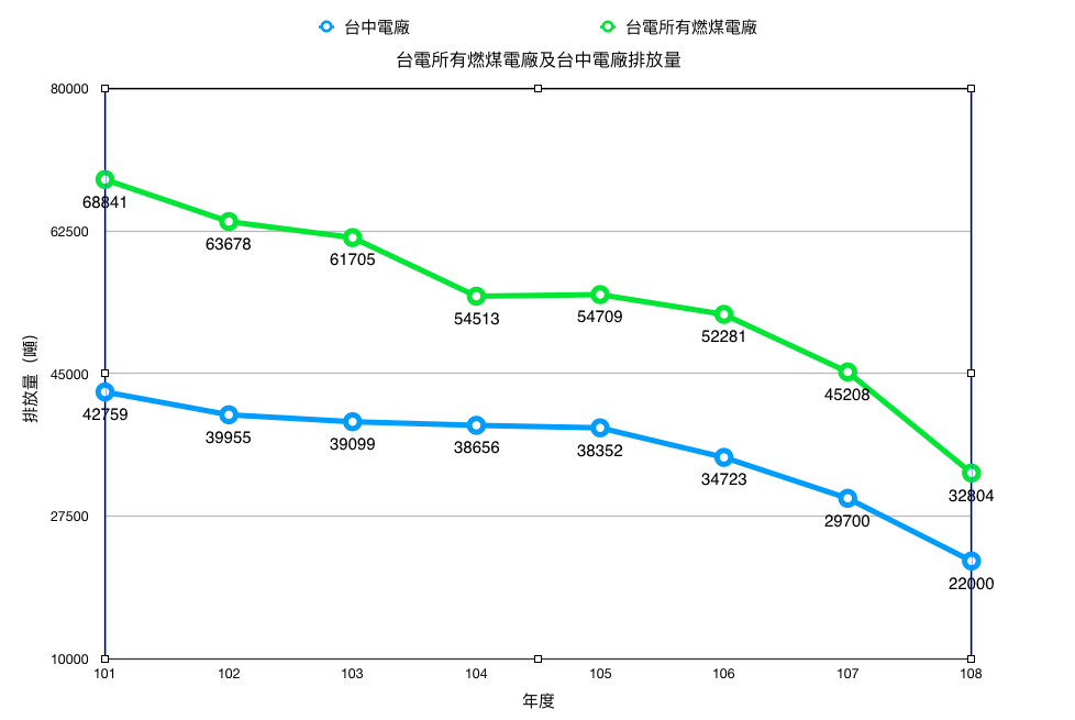 台電說明,各界關切減煤進程,台電也持續自主減煤,但台電認為,從管末加強排放處理,才是正本清源之道。因此台電採取三項措施,首先是擴大降載,今年9至11月台電燃煤機組降載減發度數為去年的4.1倍。其次則採用最新超超臨界燃煤機組,透過提高熱效率,可減低用煤量,再搭配先進環保設備,排放幾乎接近燃氣機組排放標準。最後則是針對既有機組加強環保防制設備,以台中電廠來說,自營運以來投入139億元資金從事防制設備改善,106年起更投入431億元推動空氣污染控制設備工程。