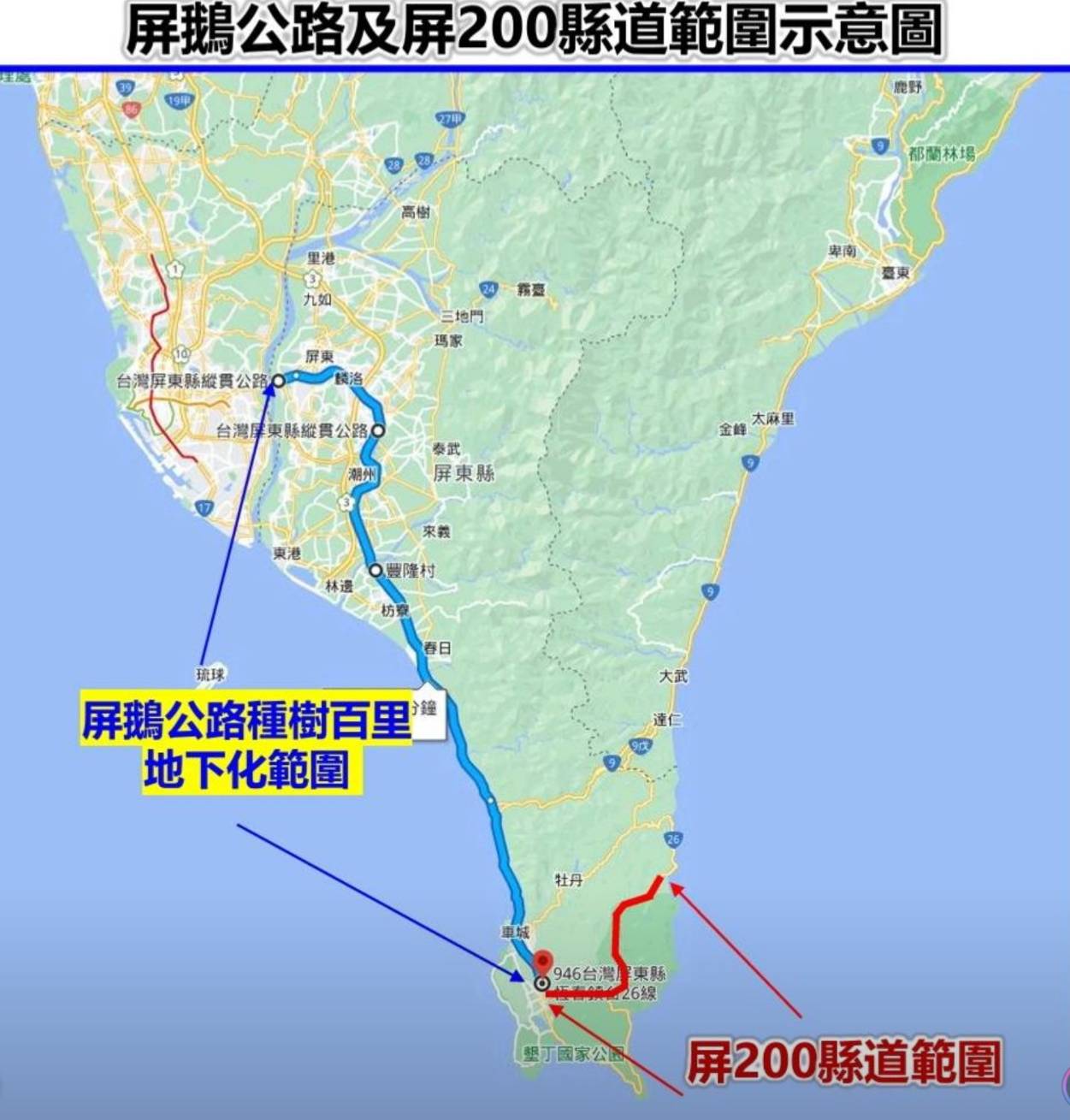 屏鵝公路段為高屏大橋東端至台26線恆春段,並非網路所指電桿倒斷區域。