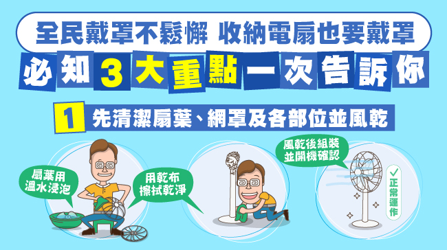 全民戴罩不鬆懈 收納電扇也要戴罩